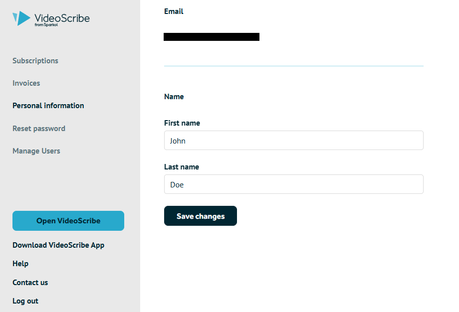 Changing the name on your VideoScribe account