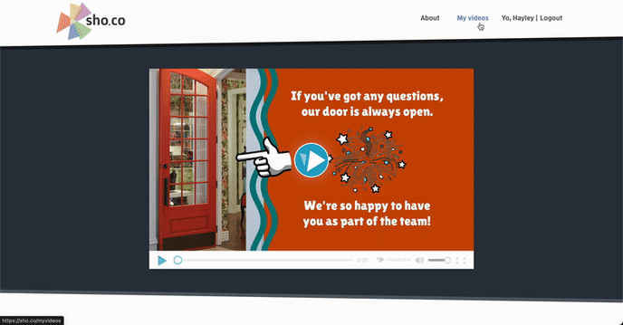 To view and download videos already stored on sho.co you must first log in to the site. Select the ‘Login’ button in the top right corner and enter your VideoScribe account credentials.