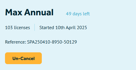 - Subscriptions which have been cancelled but have not yet expired will display the 'Un-Cancel' option and we will display the number of days you have left